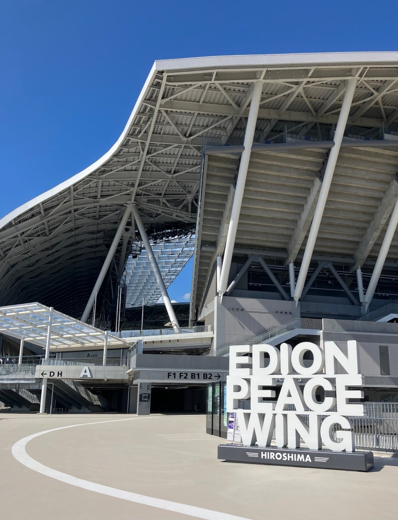 帰り道は、JR新白島駅まで約4km、1時間ほどを歩く事に。途中、観光名所、平和公園と新しく出来たサッカースタジアムへ寄り道しました。