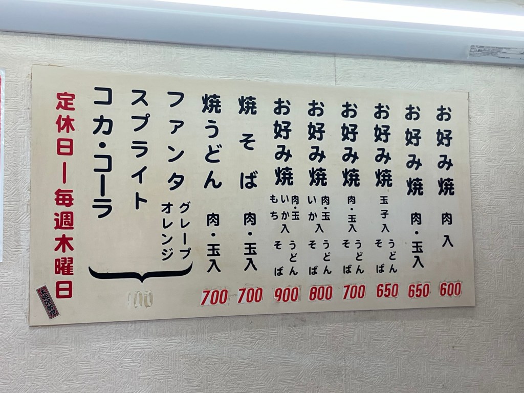スパイシーなソースがとても美味。オタフクソースではないのかな?本当に、同じお好み焼きでも、お店によって個性があります。そして、この店には歴史があります。お好み一筋50年。こういうお店が馴染みの店だと、そういう人をちょっとカッコ良いと、私は思ってしまいます。ただ、あの女性店主に自分の顔を覚えて頂くには、しっかり通う事が必要。お店でお好み焼きを50枚食べたら私の顔を覚えてくださいね。『老舗お好み焼き店の常連』という他の人には伝わらない、この肩書きが私は欲しいです。私はメニュー表には載っていなくても、これをおばちゃんへ注文する。