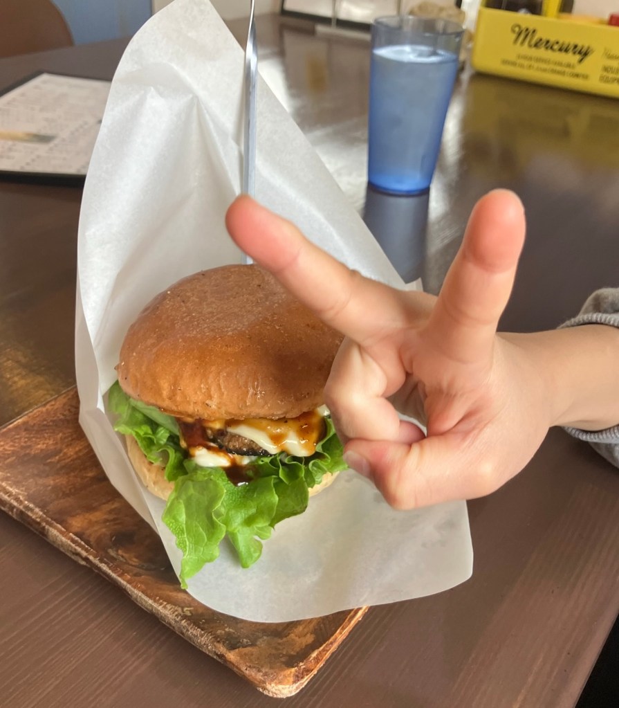 今回、私はそばシングル餅追加。息子はチーズバーガーを食べました。