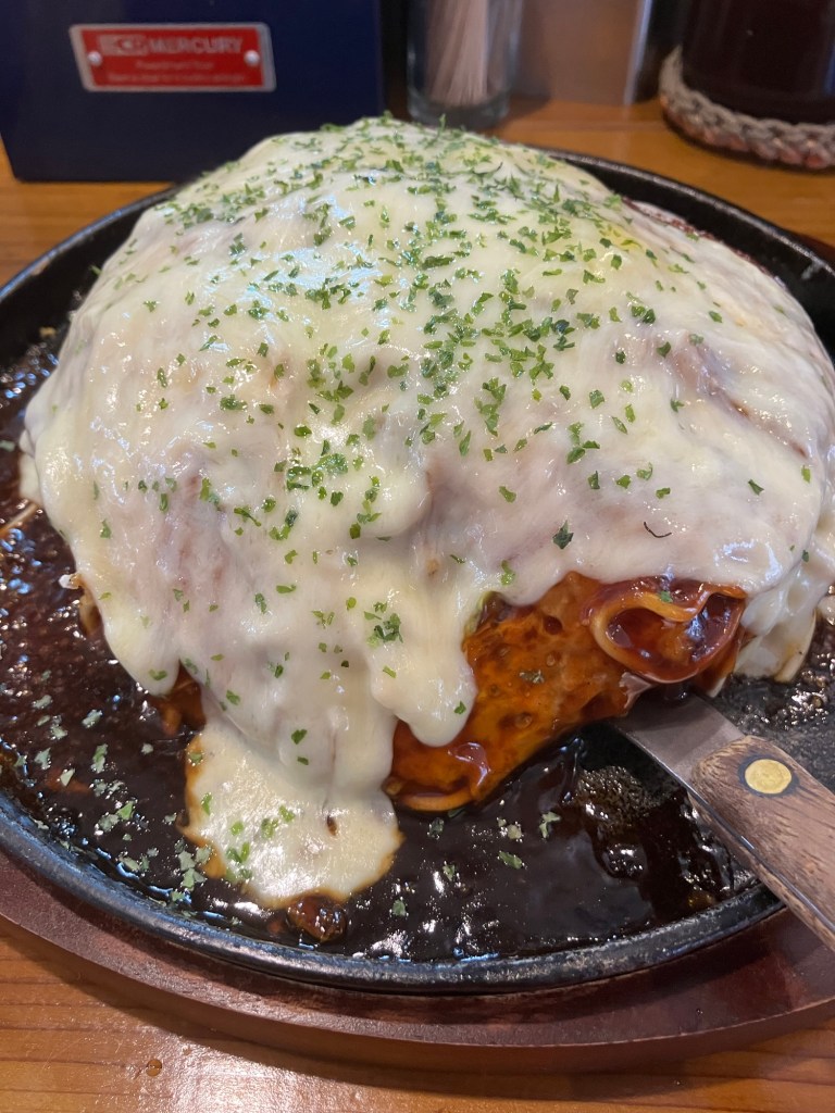 まだ綺麗に食べられないので、服はこぼしたタレだらけ。でも、息子なりに全部食べていました。私は、やっぱりこの前回の画力、迫力には及ばないので追加でやっぱりチーズ✌️かな?